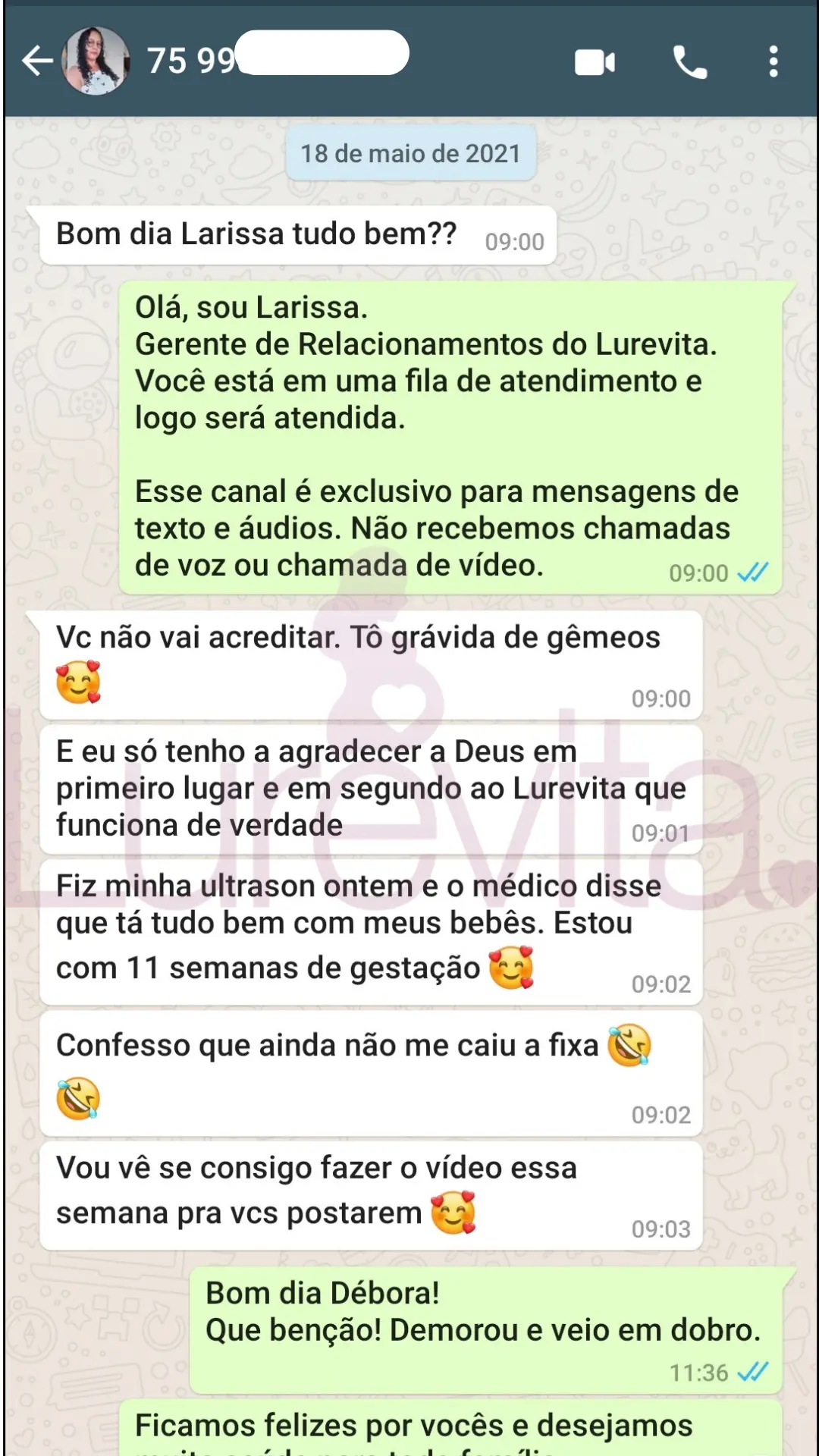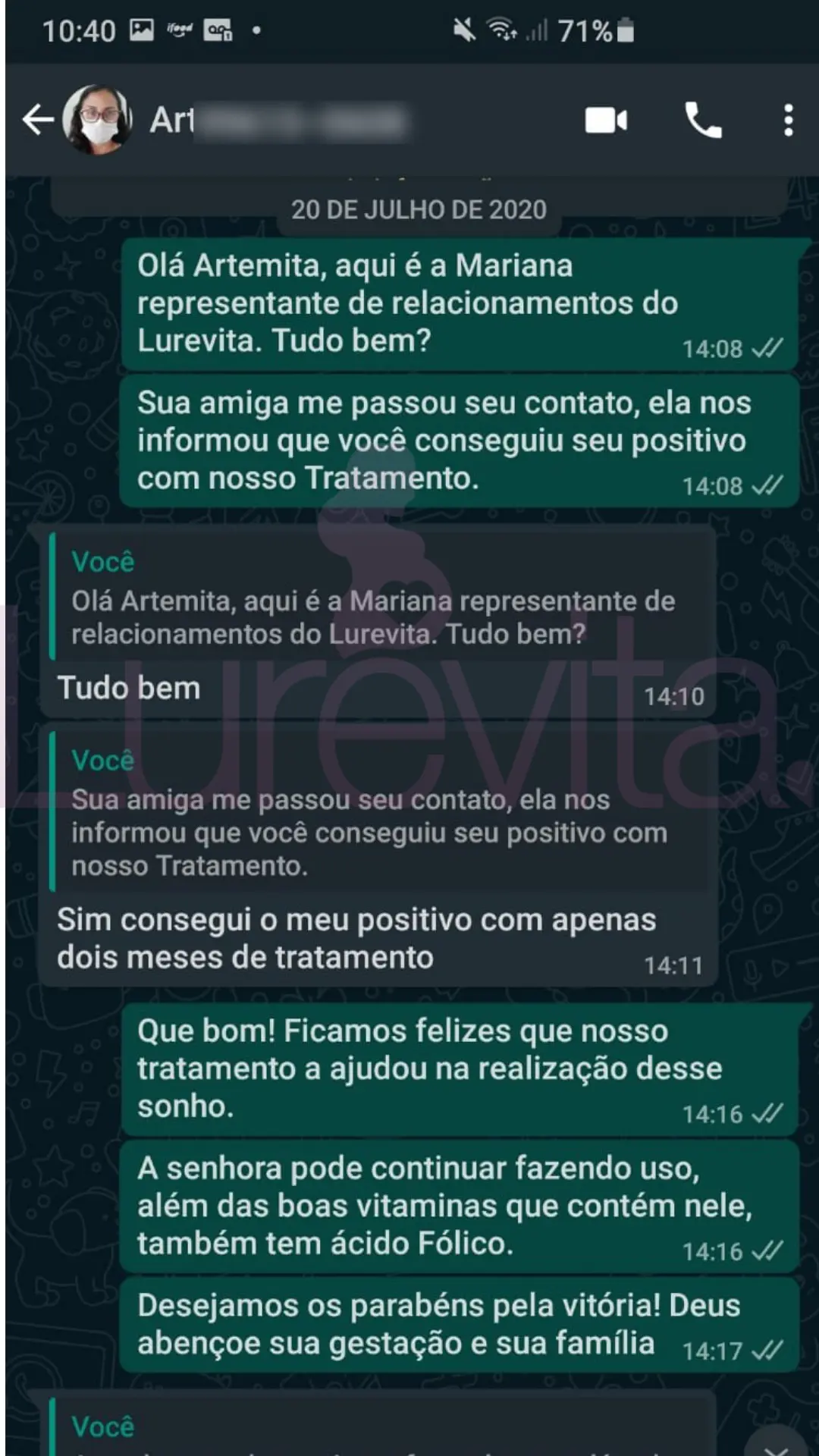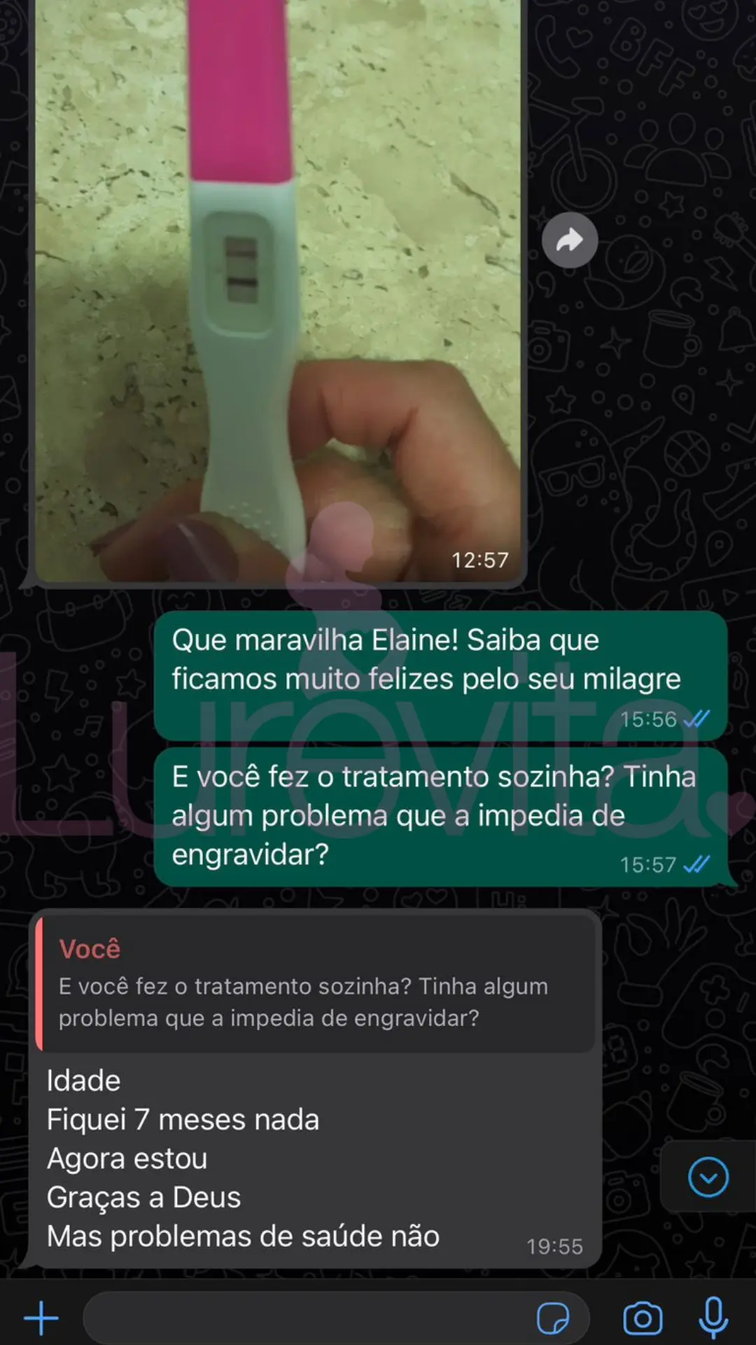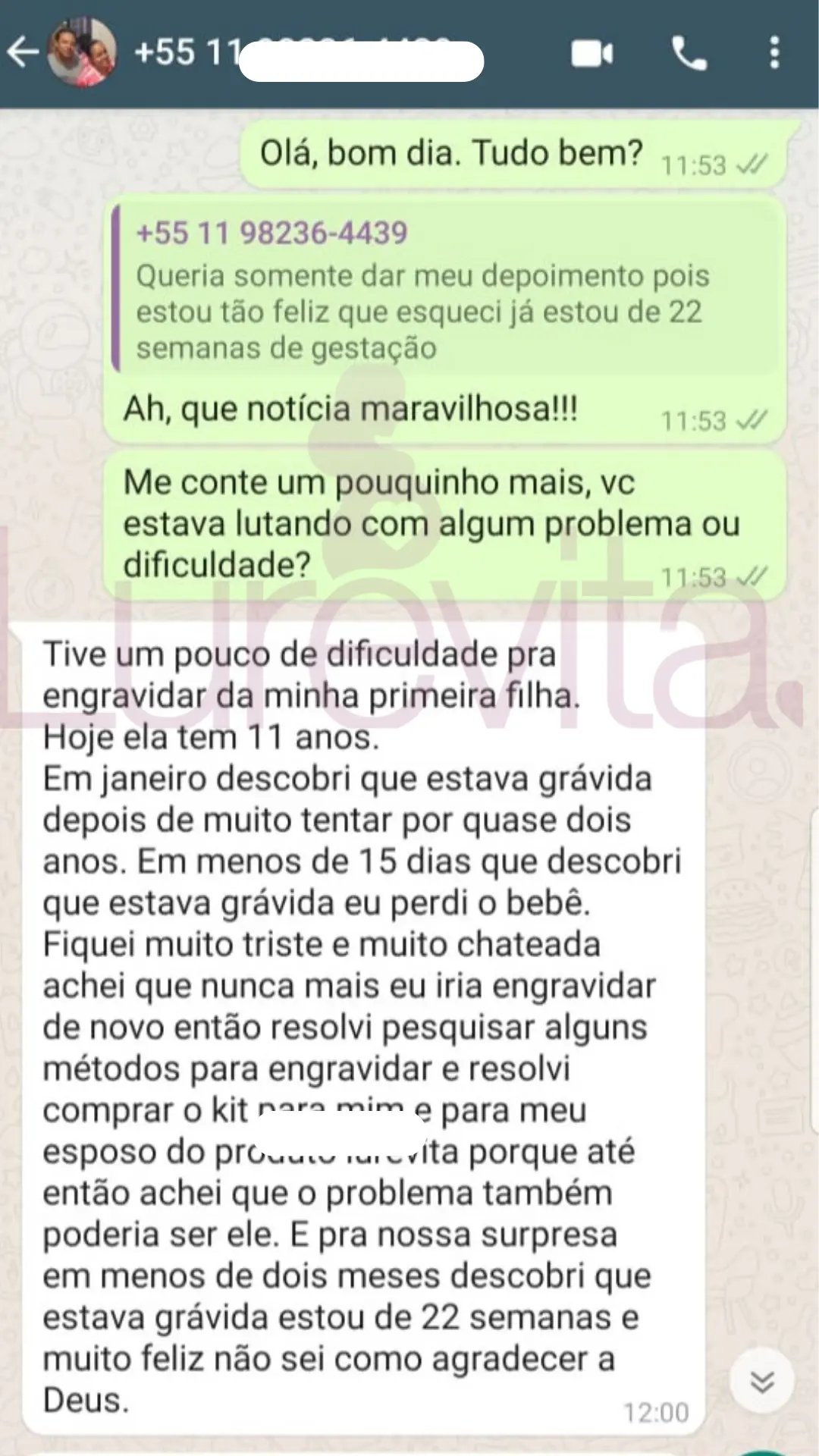 Vale lembrar que cada corpo reage de um jeito ao produto, por esse motivo temos clientes que conseguiram com 2 meses de uso, outras com 5 meses de uso e algumas conseguiram depois de 8 meses de uso. O importante é saber que com o Lurevita, as suas chances de conseguir seu positivo são maiores!