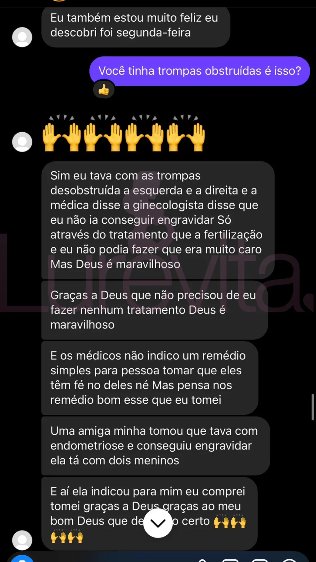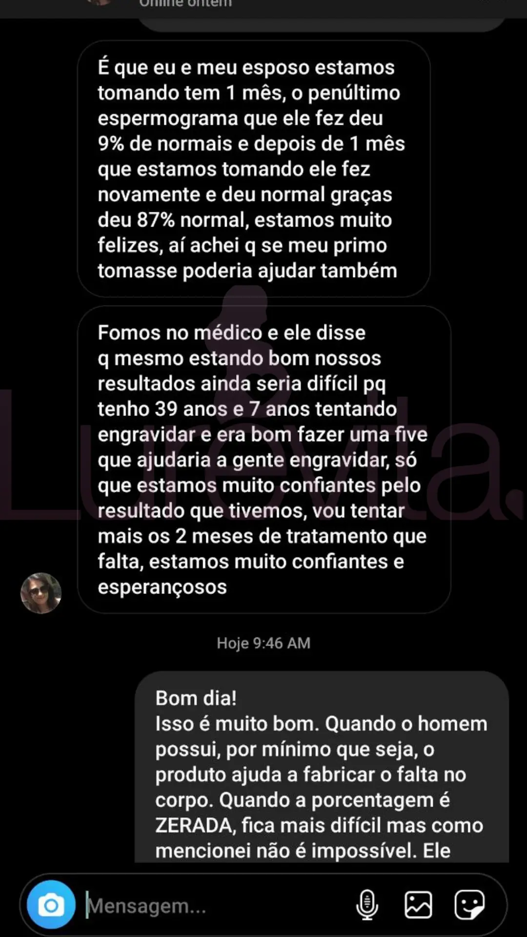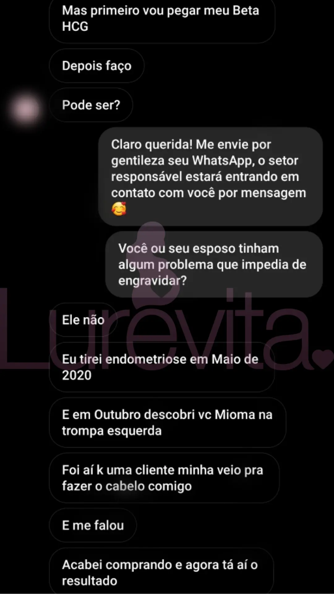 Somos uma empresa séria e não vamos ficar te prometendo que vai engravidar com 1 mês de uso só pra você comprar. Temos sim clientes que conseguiram engravidar com 1 ou 2 meses de uso do Lurevita, mas não são todas que conseguem com esse tempo de uso do produto.